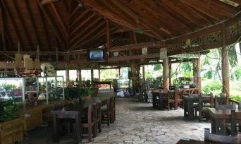海盗吧:主要提供冷饮、啤酒以及海鲜烧烤,距大海仅20米,极目海天、阳光、白云、海浪、沙滩、醉人的椰林… 夜幕降临,海面上点点渔火,阵阵涛声,海风徐徐吹来,聆听轻柔的乐队伴奏,嗫一杯椰青酒,品一口原汁原味海鲜烧烤,放诼心灵到蔚蓝的大海,唤起久违自在的逍遥。