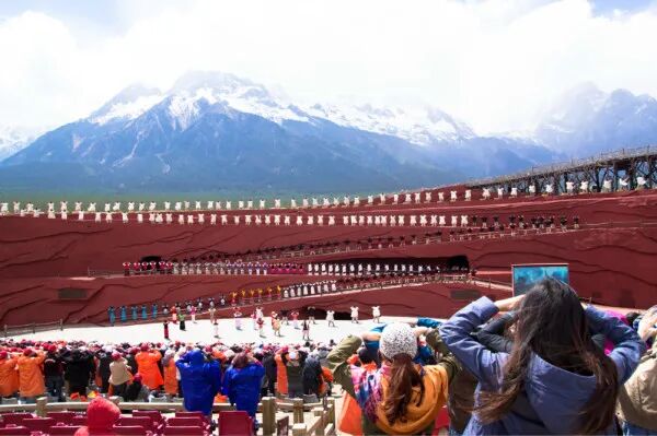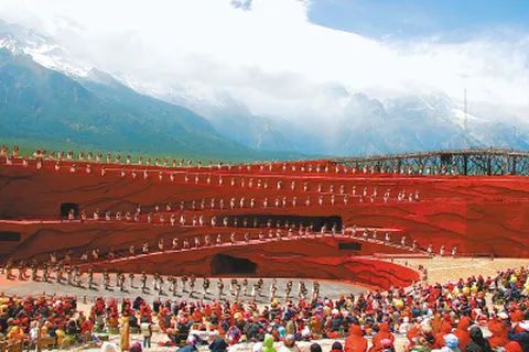 印象丽江是由世界著名导演张艺谋携王潮歌、樊跃共同执导的原生态大型白天实景演出节目,全剧共分为“古道马帮”、“对酒雪山”、“天上人间”、“打跳组歌”、“鼓舞祭天”和“祈福仪式”六大部分。剧场位于海拔3050米的玉龙雪山甘海子,以玉龙雪山的雄峰为天然背景,全长1个小时,上篇为“雪山印象”,下篇为“古城印象”。共分为《古道马帮》、《对酒雪山》、《天上人间》、《打跳组歌》、《鼓舞祭天》和《祈福仪式》六大部分。演员由来自10个少数民族的500个农民组成,他们用最原生的动作,最质朴的歌声,最滚烫的汗水……与天地共舞,与自然同声,气势恢弘,带给心灵的绝对震撼!