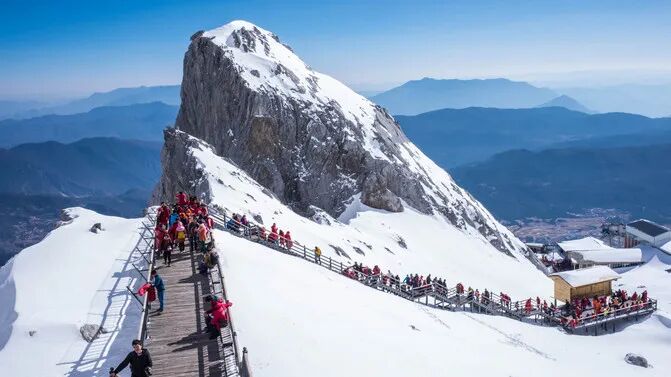 旺季(1月、2月、7月、8月、10月)雪山游客人数激增,冰川公园(大索道)限票,请提前预定。且因旺季,进入雪山景区可能会排队,请耐心等待。可以准备一些零食和水避免身体不适。