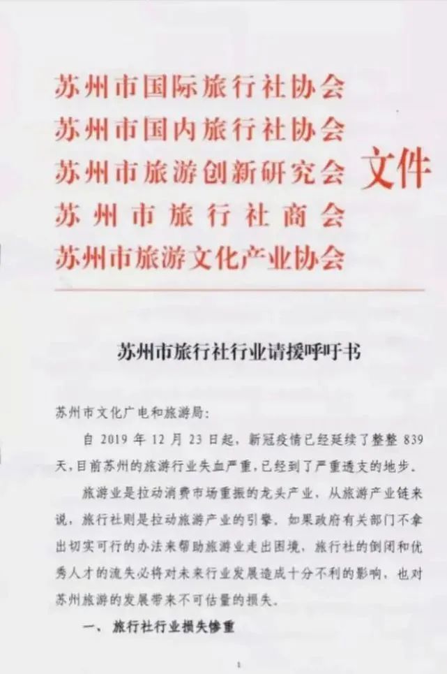近日,来自苏州市旅行社行业的一份联合请援书引发关注,不少业者表示请援书的内容,正代表了千万旅游人的心声。