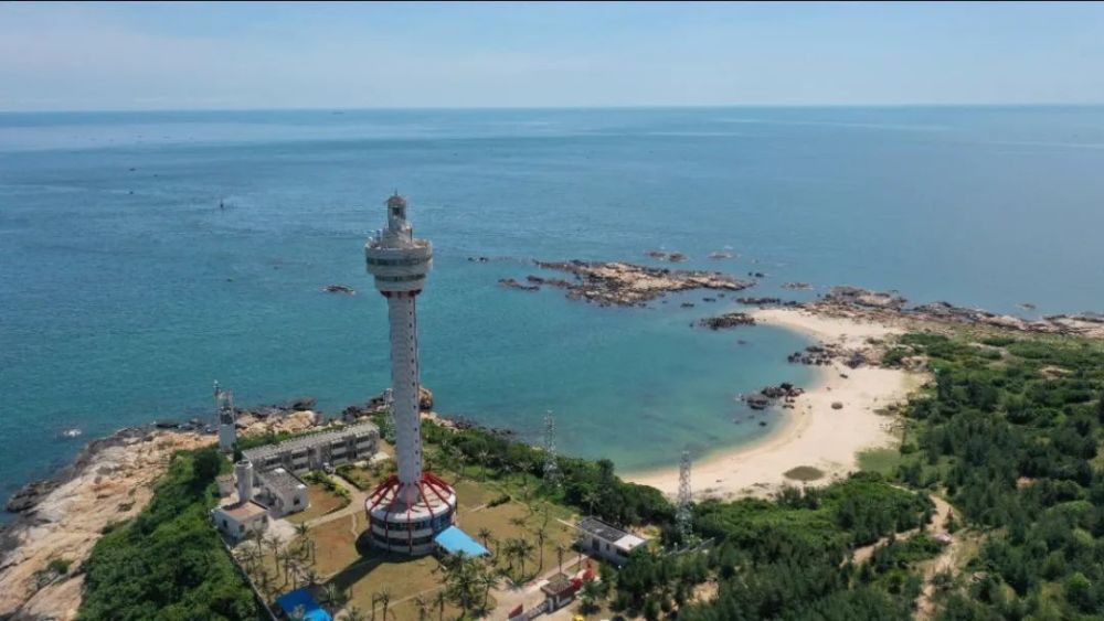 尖峰岭–东方鱼鳞洲。在这里可以看到海边一排的风电场和东方灯塔,旁边是一座港口。这座城市不大,从东方的动车站驾车到最西边的海岸,也就不过数十公里。