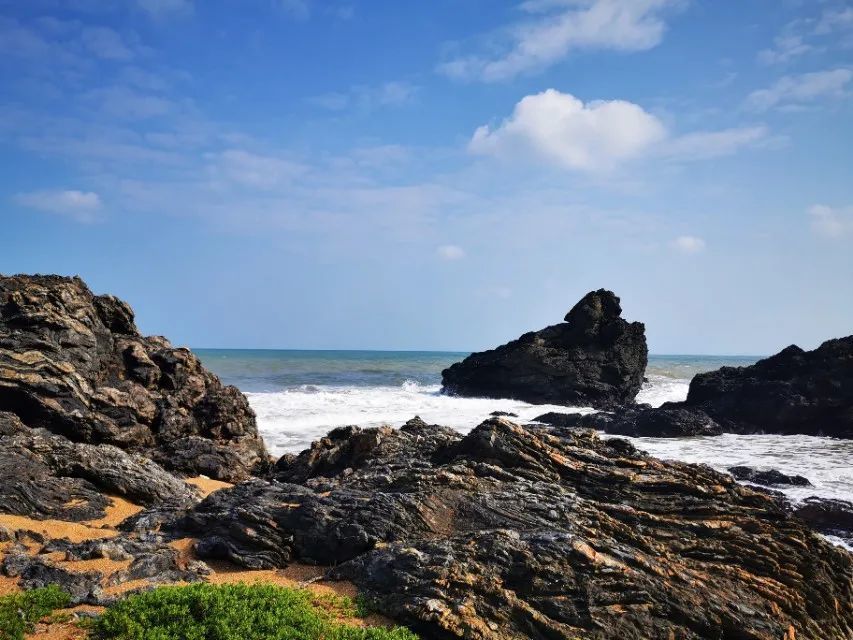 继续北行经过洋浦大桥就是北部湾大道,左拐进入X500,经过峨蔓镇,直达海南西北端的兵马角和龙门激浪,这里是一个火山地质公园,地貌独特,有着绵亘十余里的嶙峋怪石和浅海中的巨礁,还具有多个时期的火山喷发和熔岩流入海景观,兼具火山岩地层剖面、熔岩流构造遗迹和古生物遗迹。