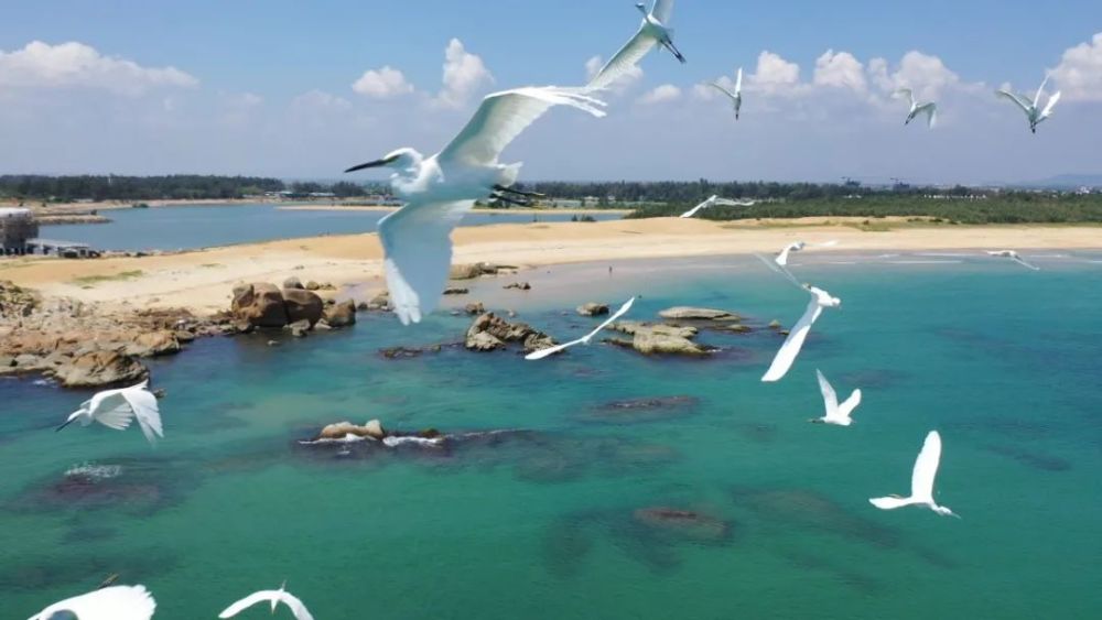 离开高隆湾,可以选择走新建好的文琼高速一路到琼海,也可以走省道201南下,途中会经过第一版西游记取景地冯家湾,现在已经成为当地最大的海滨浴场。向南到琼海,这一路沿岸都是水产养殖基场,延绵长达几十公里。