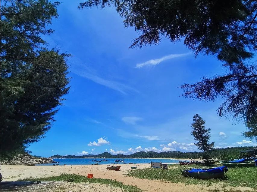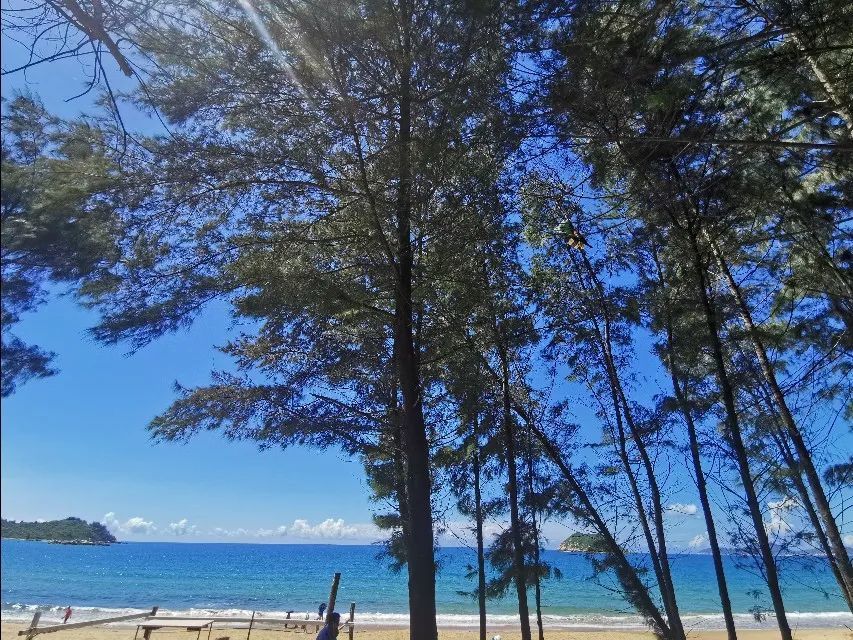 从酒店下楼后走几百米就到海边,会看到自由海岸几个大字立在滩头,除了纯白的沙滩和秀美的海水,还有整齐的植树林,在林被下乘凉完全不用担心被晒。平时人数较少,比起三亚相对清净舒适。不论是日出还是夕阳都能让你有无尽摆拍的兴致,拿起你的相机不停的哒哒吧。