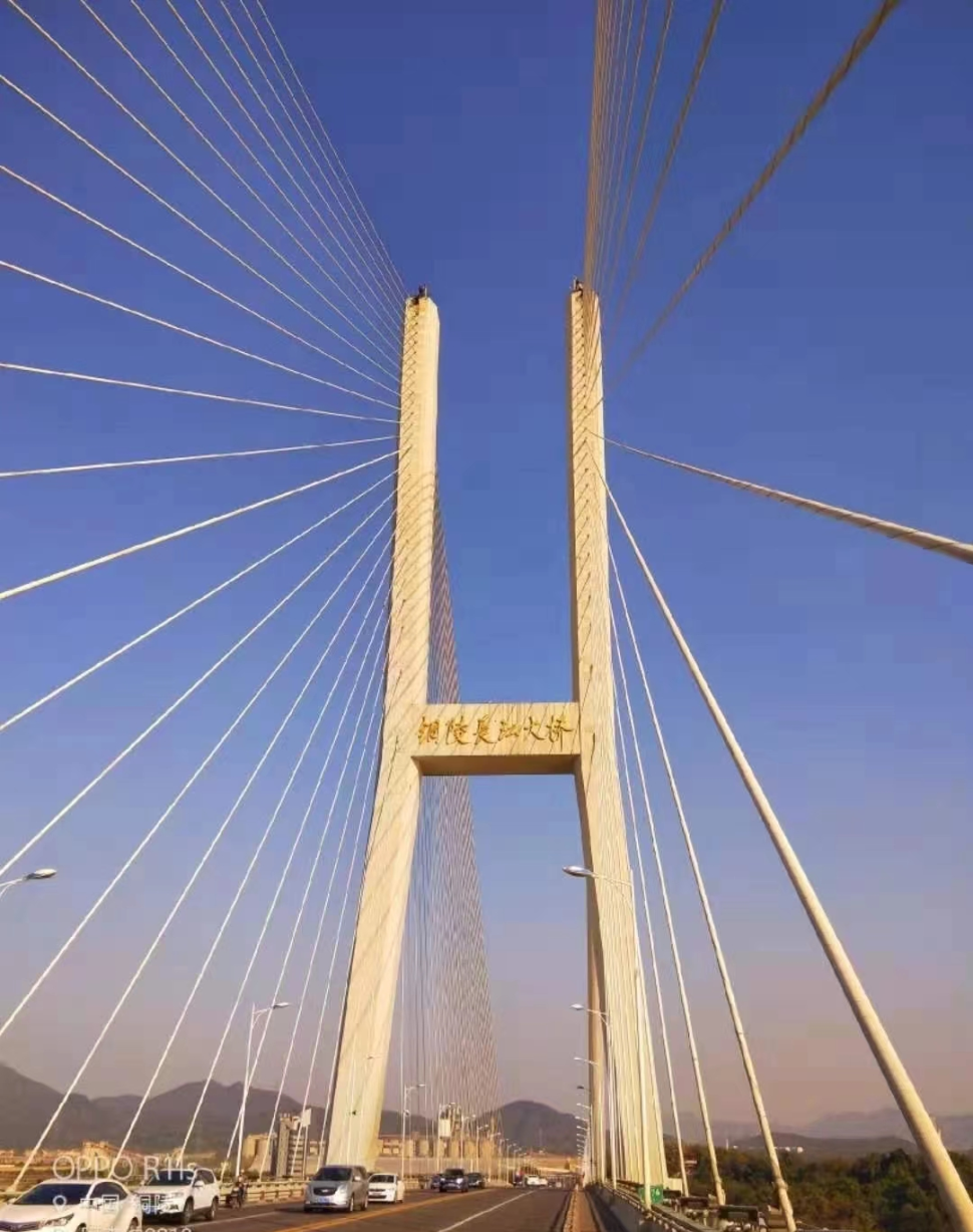 被誉为“皖江第一桥”的铜陵长江大桥,位于安徽省铜陵市羊山矶下游,是国家“八五”计划的重点工程,是当时世界上同类型第3位大跨径桥梁,也是安徽省境内第一座长江大桥。该桥桥型为预应力钢筋混凝土双塔索面斜拉桥,全长2592米,主桥长1152米,于1991年12月开工建设,1995年12月26日竣工通车。