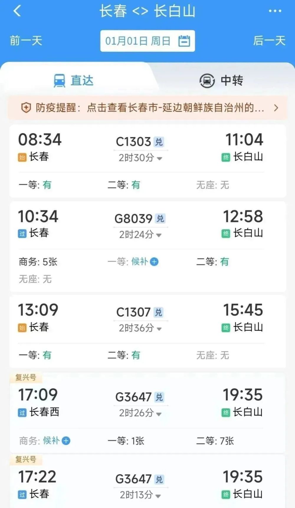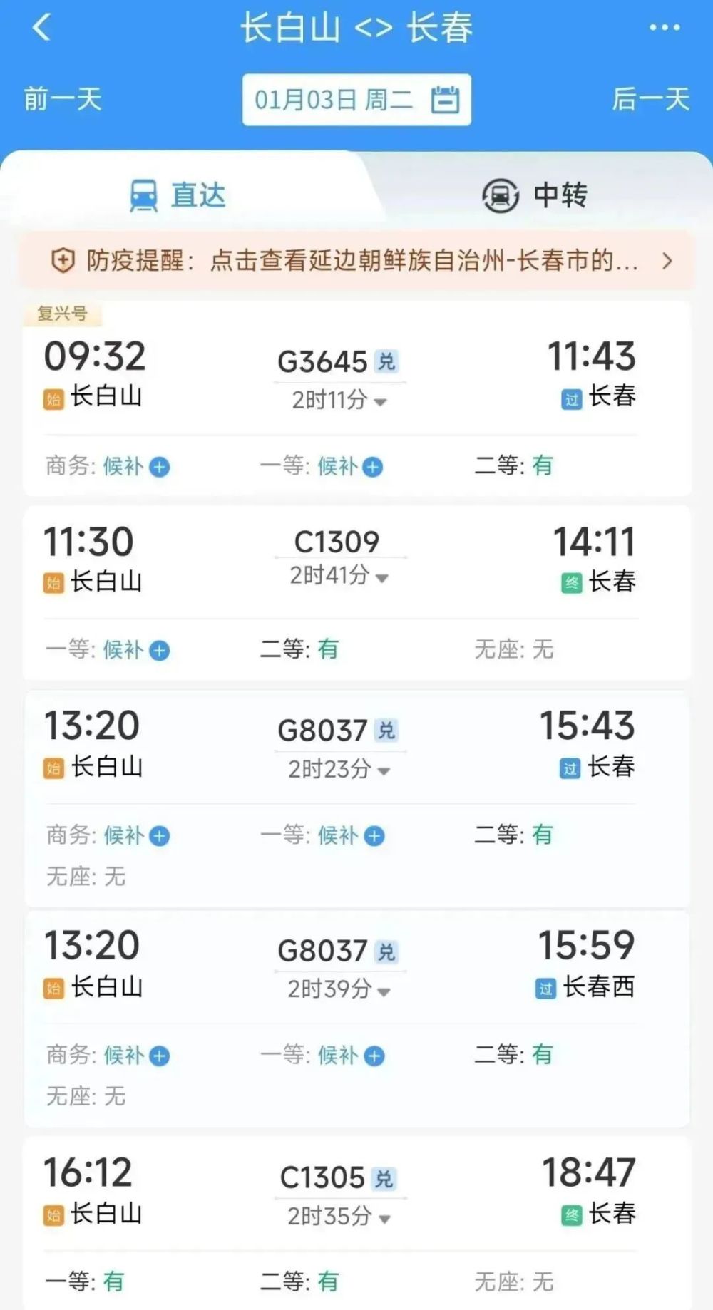 高铁往返信息: