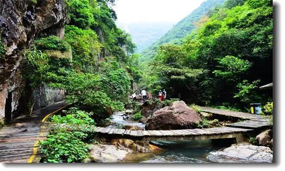除了白水仙瀑以外,亲水栈道也非常受大家的欢迎。它贴着溪流,指向山谷深处,沿途都有绿荫遮蔽。