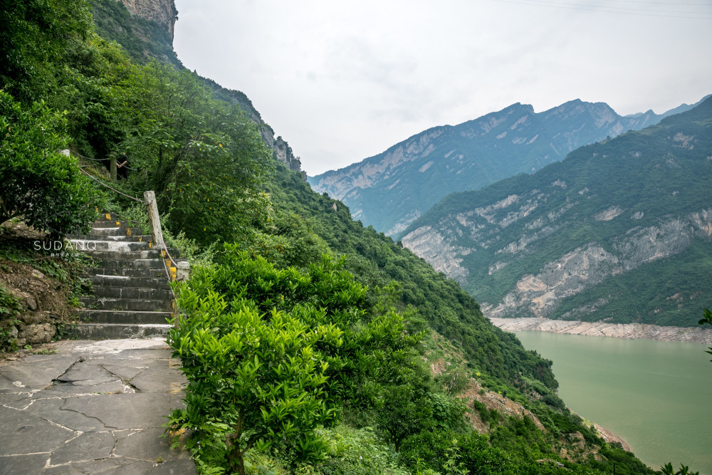 沿着新修的滨江步游道一直通向链子崖山脚之下,大气磅礴的峡江风光令我心旷神怡。