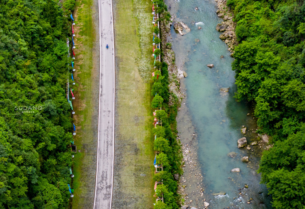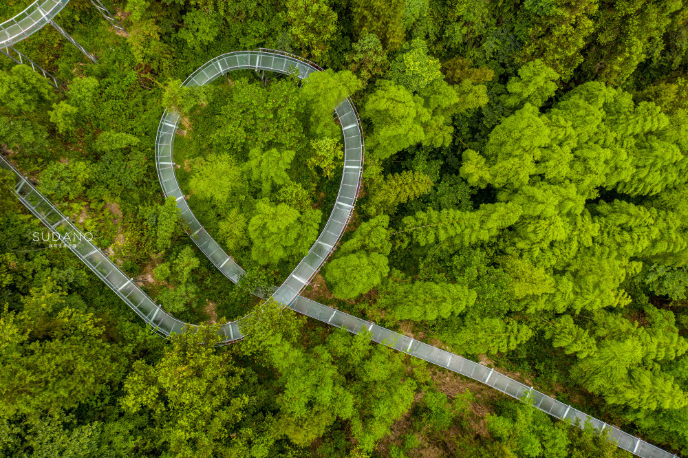 山泉滑漂依山而建,穿越高山竹海,航拍之下犹如巨龙盘踞在竹海中。游客乘坐橡皮艇盘旋而下,可同时赏竹海,望梯田,观云海。