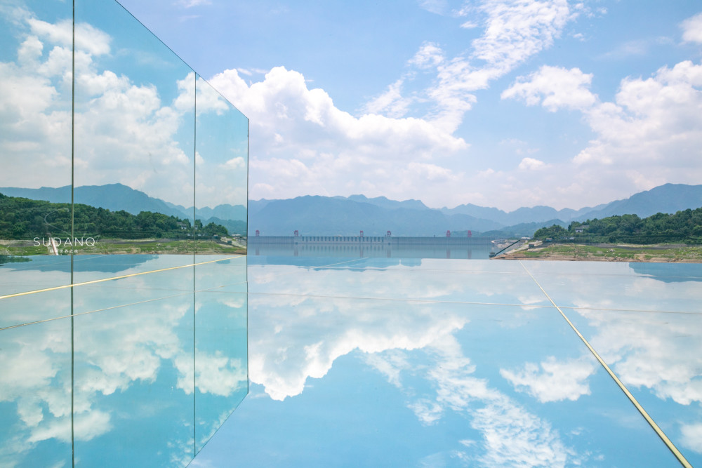 在木鱼岛也可见三峡大坝的宏伟壮阔,与三峡大坝相距仅800米,出口处正对三峡大坝,附近还有一个天空之镜。