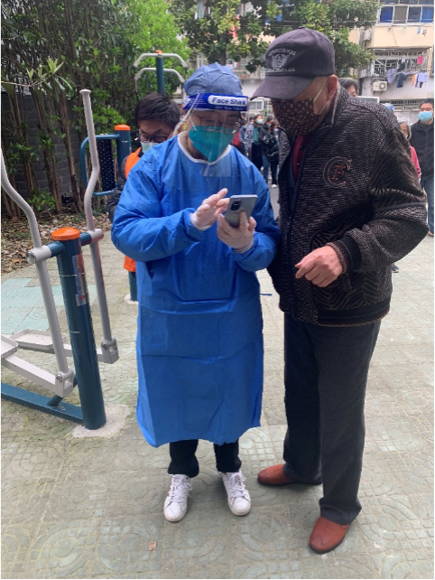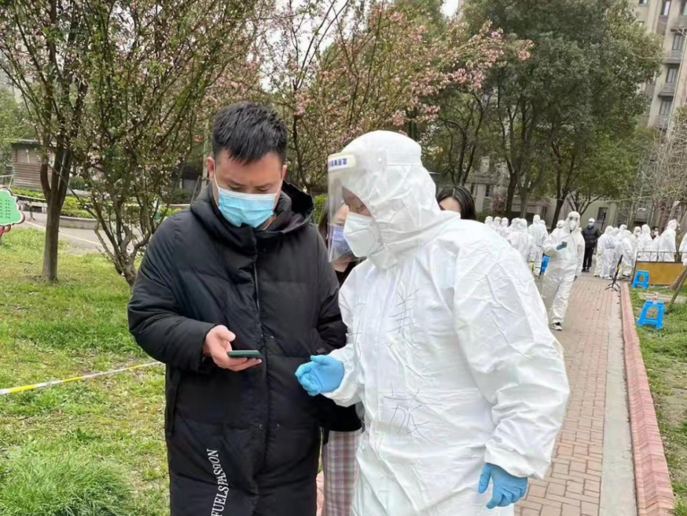 协助组织居民进行抗原检测。从13:30到19:30,她不厌其烦地讲解着检测的方法,解释着居民们的疑问,大约服务了690位居民。