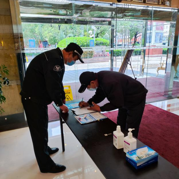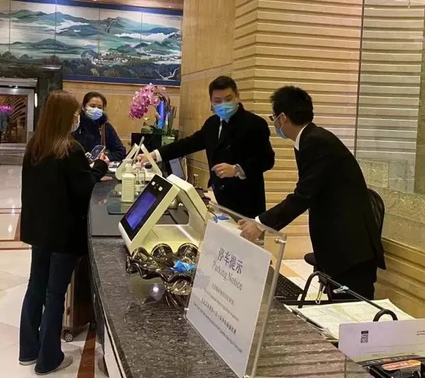 酒店党总支书记、副书记主动驻守酒店,深入一线防疫管理,带头参与一线服务。
