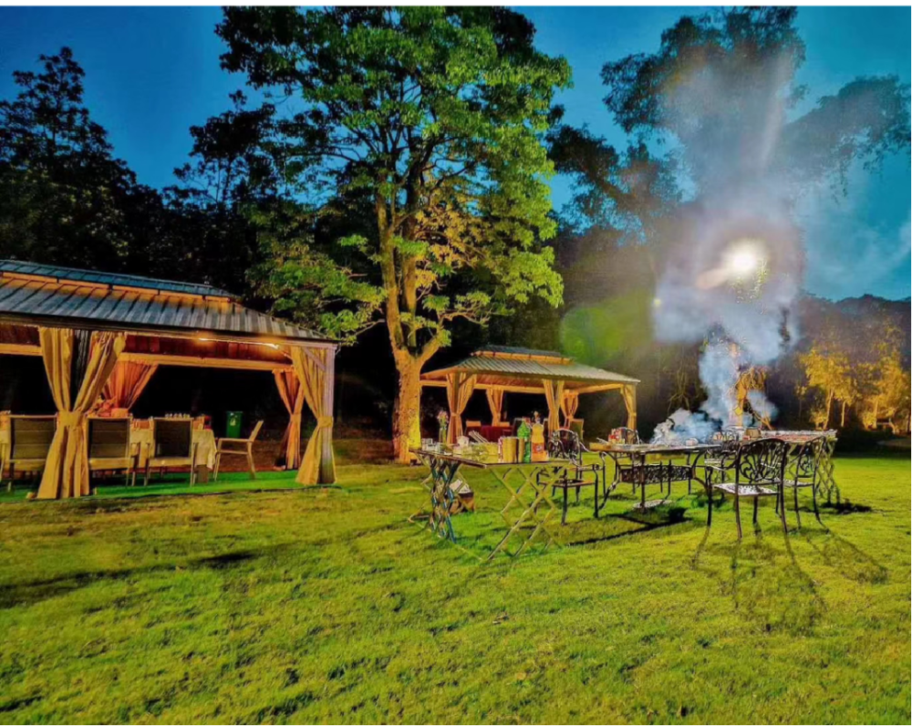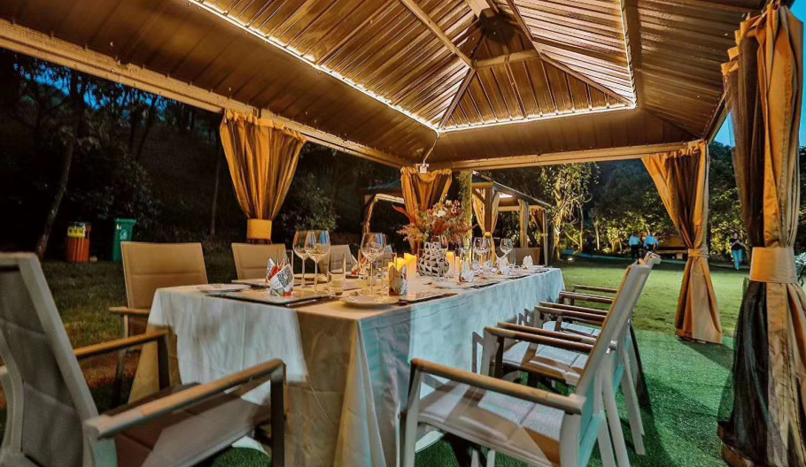 景区内设置了一处露天草地聚餐区,可在此享尽美食,户外烧烤、土窑鸡、自助餐等,还提供多人聚餐桌,和亲朋好友在此可享受特别的森林盛宴。