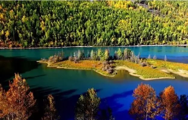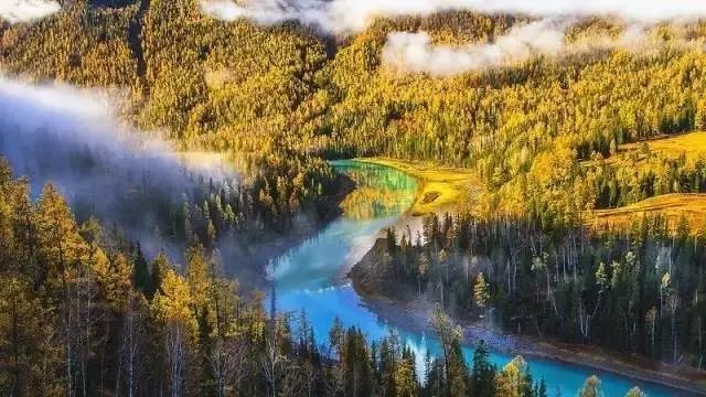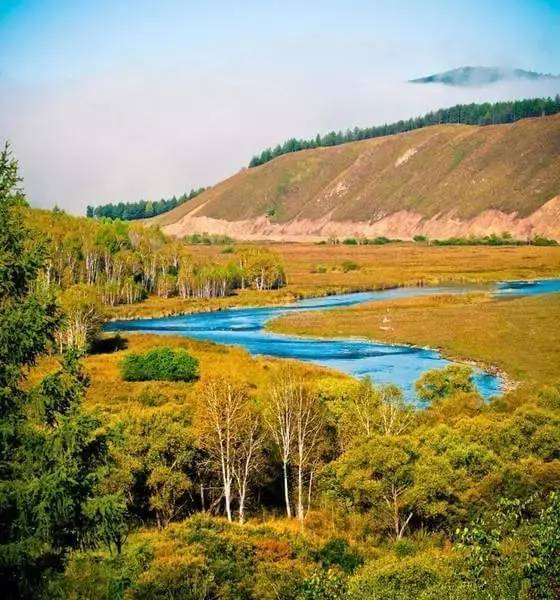 夕阳的余晖泼洒在这片土地上,茂密的白桦林上就像是蒙上了一层金黄色的纱衣,清澈透明的河水在其中穿梭,让这景色深深刻画在心上。