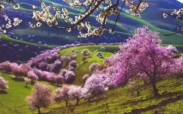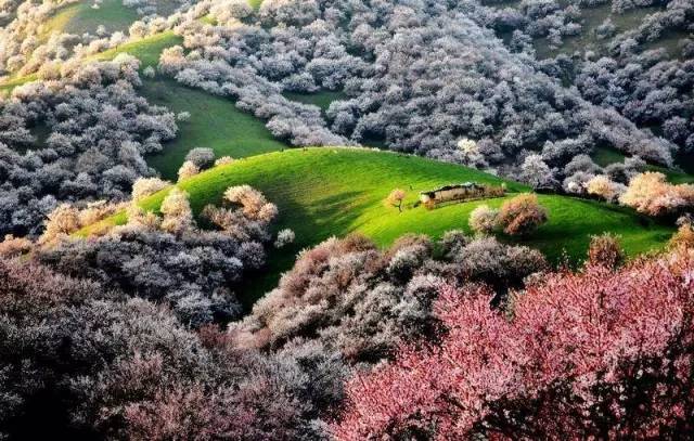 每年春至,杏花遍绽放在山腰沟谷之间,一树树一丛丛,粉色杏花蔓延开来,远看大气磅礴,近看娇艳妩媚。