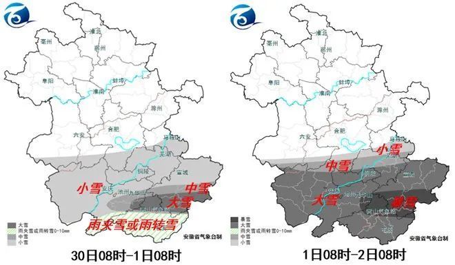2. 28日-30日我省自北向南将出现强寒潮天气,气温剧烈下降并伴有大风,29日-12月1日大别山区和沿江江南部分地区将出现雨雪天气。