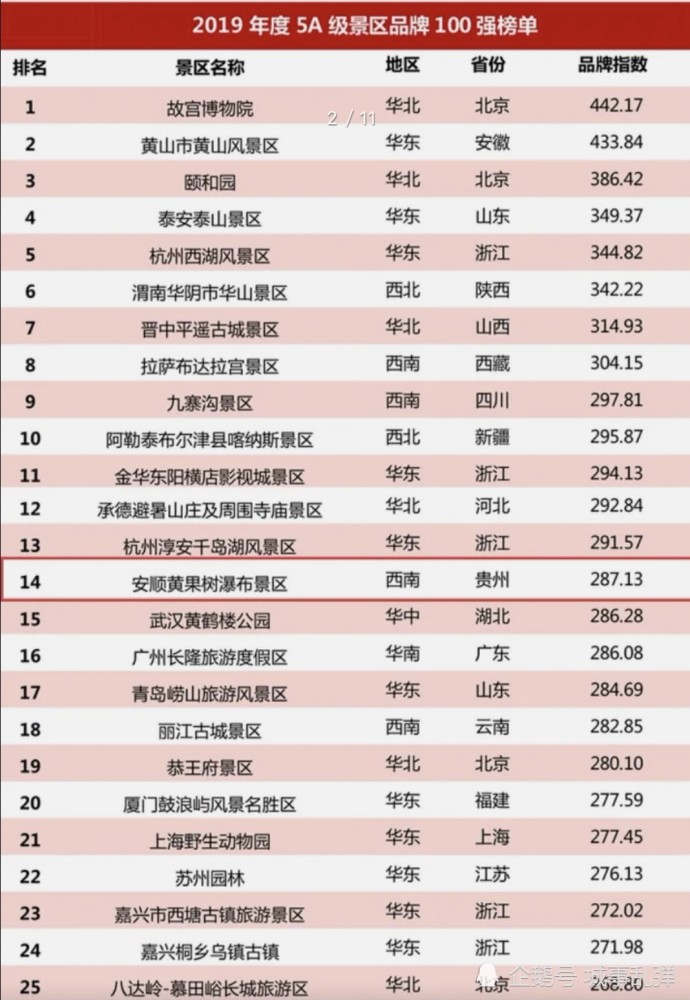 由文旅平台和迈点研究院发布的2019年5A景区品牌100强,前10分别是故宫博物院、黄山、颐和园、泰山、西湖、华山、平遥古城、布达拉宫、九寨沟、喀纳斯。西湖景区算是最为独特的一个,无门票。不知道当初作出西湖不要门票决策是哪个部门,真的很庆幸。很难想象当你走到了延安路,看着近在咫尺的西湖被一道栅栏搁在外面,那种感觉别说多憋屈了。