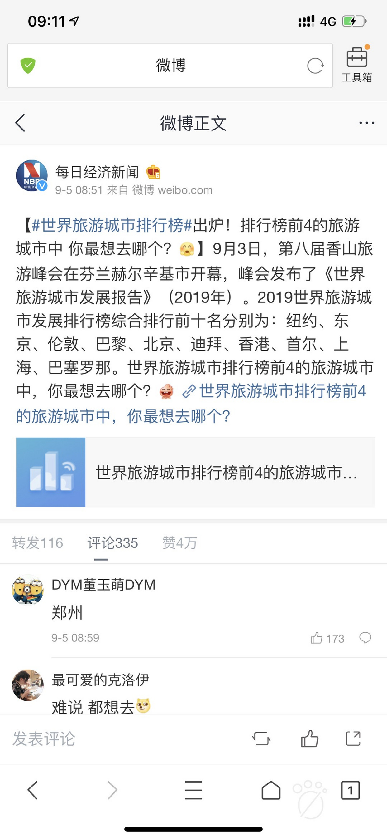与此同时的9月3日,第八届香山旅游峰会在芬兰赫尔辛基市开幕,峰会发布了《世界旅游城市发展报告》(2019年)。2019世界旅游城市发展排行榜综合排行前十名分别为:纽约、东京、伦敦、巴黎、北京、迪拜、香港、首尔、上海、巴塞罗那。