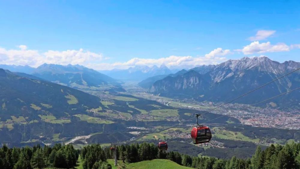 这是真的吗?半小时前,我们还在舒适的城市因斯布鲁克中间,欣赏着 Tommy Hilfiger 的橱窗。现在,我们在海拔2300 米的Nordkette的顶部,俯瞰着连绵的Karwendel 山脉,向德国方向逶迤而去,巍峨的灰色山峰在蓝天的映衬下显得格外醒目,看着登山者背起背包踏上轻快的旅程。