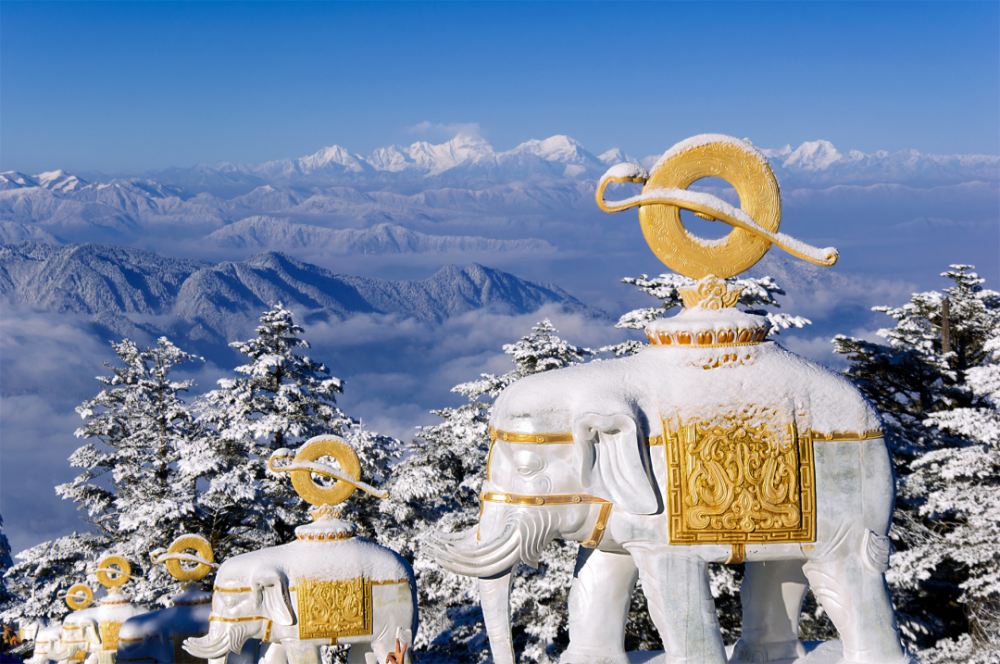 蜀国多仙山,峨眉邈难匹。海拔3079米的金顶,清冷无尘,雪覆千里苍茫辽阔,驻足眺望蜀地平原遥不可及。若是人间烦恼三千无处可消,那么峨眉山的雪,一定是最好的归处。