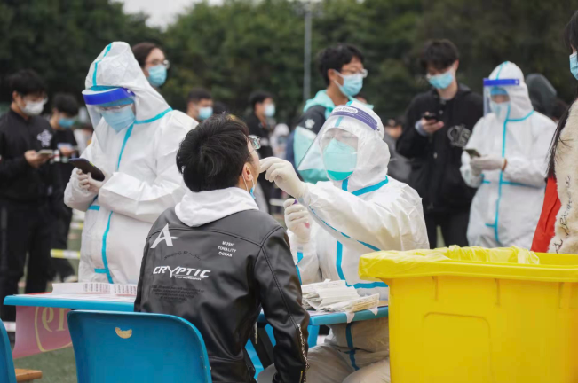 11月5日凌晨,学院1700余名在校生和数百名教职工分别在都江堰校区和社区紧急开展核酸检测。
