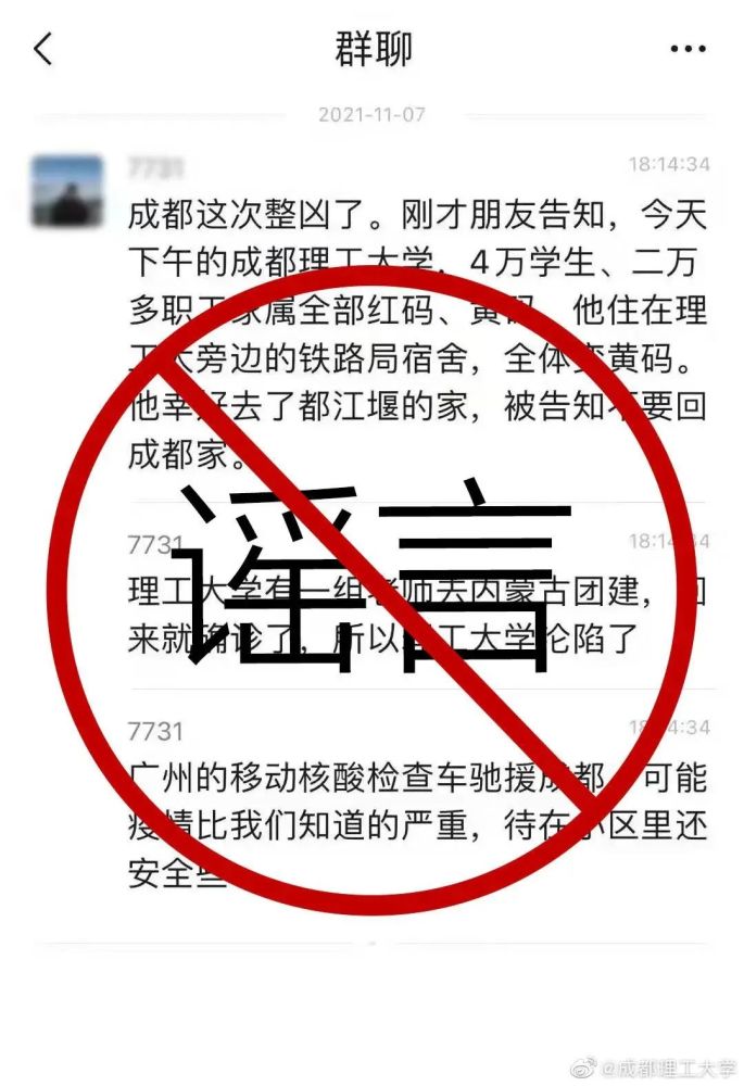 近日,有人在互联网恶意散播疫情相关谣言:成都锦城学院发现两例确诊、成都理工大学老师去内蒙古团建后回蓉确诊,以上均为谣言!