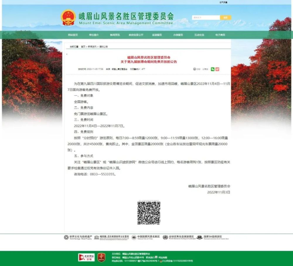 据峨眉山景区官宣