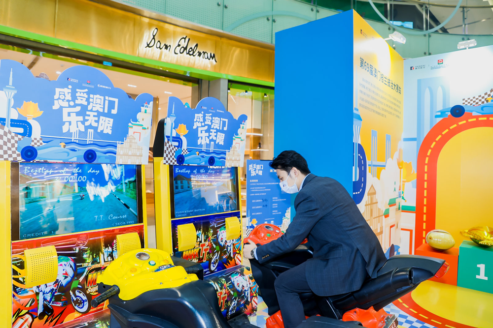 此次2022“感受澳门 乐无限”成都路展为成都市民打造了一个沉浸式打卡澳门的场景,澳门街景、节庆盛事、澳门手信、民俗文化等均有呈现。澳门格兰披治大赛车也“搬”到了活动现场,市民可参与摩托赛车互动,体验城市赛车的乐趣,也能在颁奖台上当一次赛车冠军。