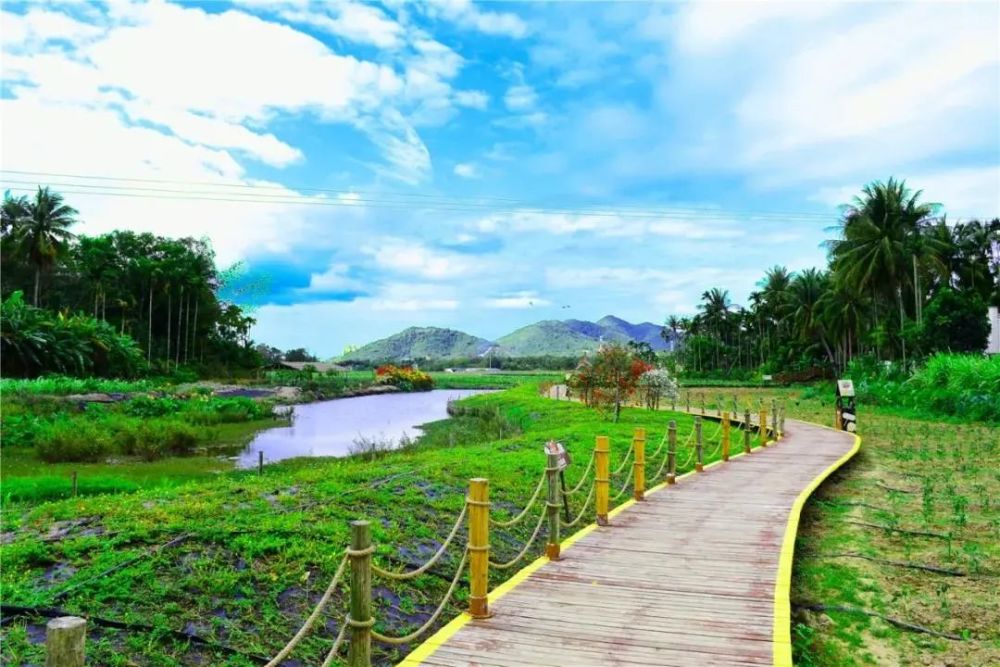 “乡味”“野趣”是中廖村的关键词。这里山林苍翠可望,潭水碧波荡漾,民宿炊烟袅袅,处处洋溢着浓烈的热带风情。