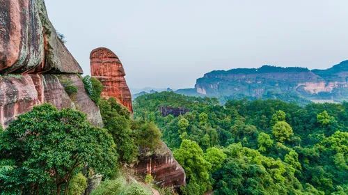 是中国面积最大、发育最典型、类型最齐全、形态最丰富、风景最优美的丹霞山地貌,具有雄、奇、秀、险、幽、奥、旷等特点,又称“中国红石公园”,自古为岭南第一奇山。丹霞山是世界“丹霞地貌”命名地。