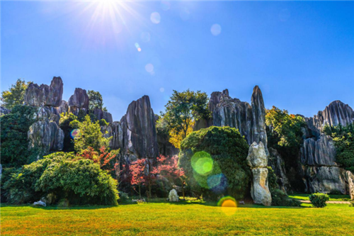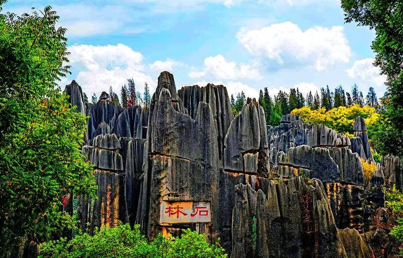 位于云南石林彝族自治县,距昆明78公里,是一个以岩溶地貌(喀斯特地貌)为主体的风景名胜区,景区由大、小石林、乃古石林、大叠水、长湖、月湖、芝云洞、奇风洞7个风景片区组成。在石林广达400平方公里的区域内,遍布着上百个黑色大森林一般的巨石群。