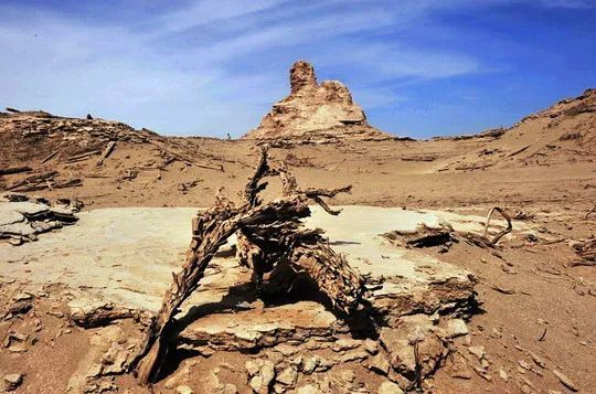 拱起的土山丘形成很长的脊梁和沟槽,被古代著名的水利学家郦道元在他的《水经注》中形象地称为“龙城”。后来的人们看到龙城的颜色又是白色,就干脆呼为“白龙堆”。这条长长的白龙堆仿佛就是一座天然的石刻雕像馆,干姿百态,令人目不暇接。