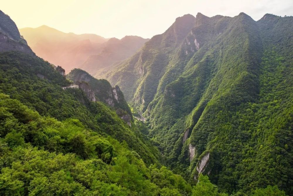 两岸高山对峙崖壁陡峭山峰一般高出江面1000—1500米最窄处不足百米。