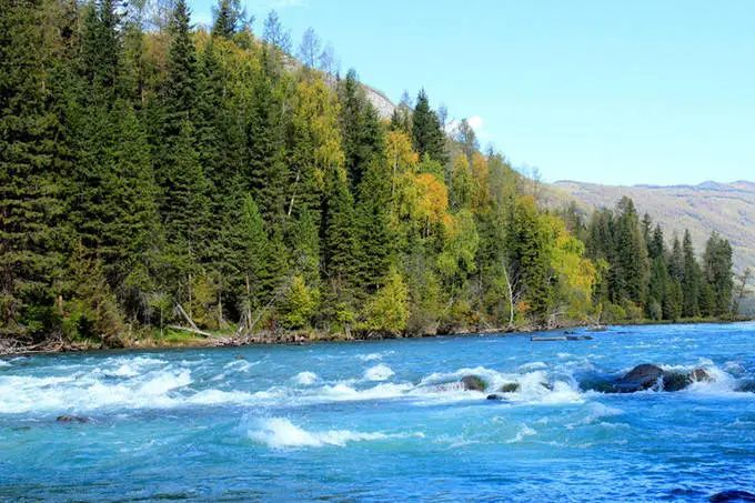另外喀纳斯河从东北向西南流经,著名的“喀纳斯湖”和“白湖”呈串珠状分布于喀纳斯河流域,形成一狭长的低洼河谷地。
