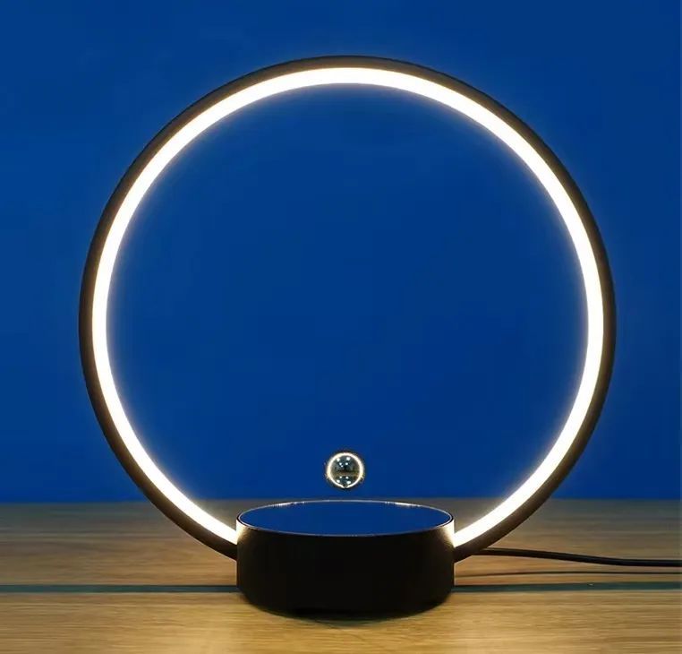 磁悬浮台灯产品尺寸:底座尺寸:250mm;球尺寸:20mm;月球尺寸:40mm;浮动间隙:12-15mm;底座颜色:黑色、白色、木纹色;光源:白光或RGB灯光;环形磁珠灯是悬浮在空中的神奇磁球,为了减轻人们生活的压力,磁珠在不可见磁场中漂浮并旋转,营造舒缓,停顿的视觉体验。