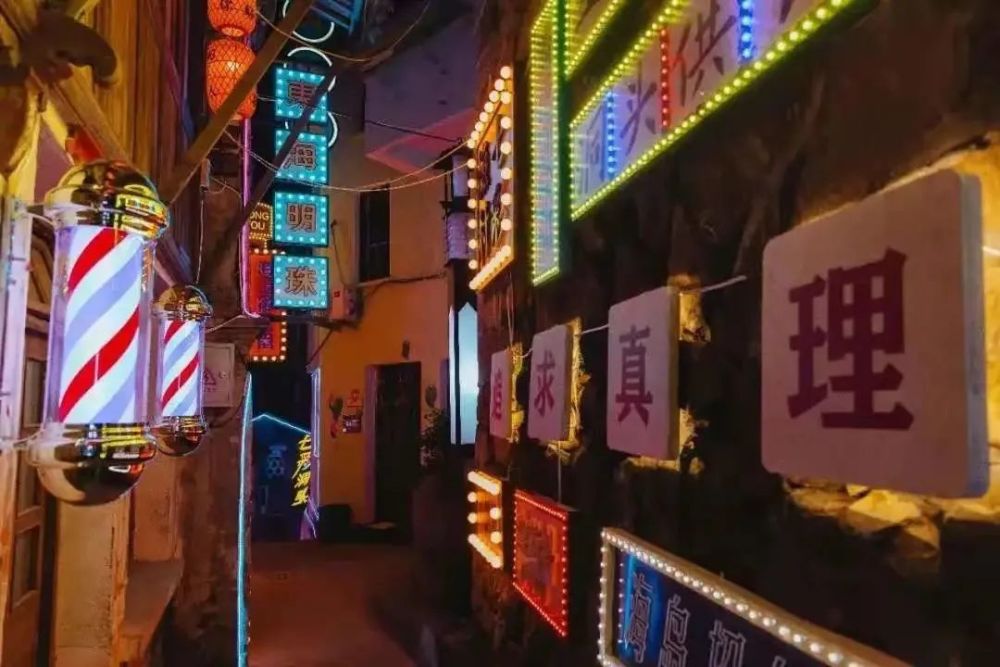 如果运气好的话,还能碰到不定期举办的七彩巷活动,像跳蚤集市、游玩探店、冰川玫瑰、非洲鼓音乐会等等都能体验到。在跳蚤集市活动现场,道路两旁摆满了大小摊主们精心准备的各类书籍、精美的文具、新奇的玩具等等,品类繁多,琳琅满目。在冰川玫瑰打卡点,冰川倾泄而下,玫瑰破冰而出,在冰雪上盛开热烈的浪漫,随手一拍,把浪漫定格。除此之外,霓虹灯、复古风、乐队solo、咸鱼集市、亲子集市、文创集市各种有趣的,好玩的应有尽有,同时还有很多美食等着你大饱口福。