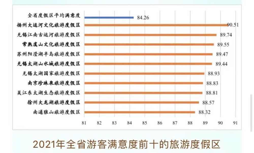 2021年全省旅游度假区游客满意度得分为84.26分,继续保持在“满意”水平。扬州大运河文化旅游度假区游客满意度得分为90.51分,进入2021年全省游客满意度前十旅游度假区榜单,并居第一名。