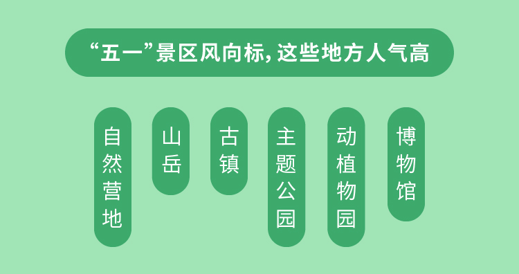 除了自然营地,“家门口”景区也赚足了人气。山岳、古镇、主题公园、动植物园、博物馆同样受到了游客的关注和喜爱。