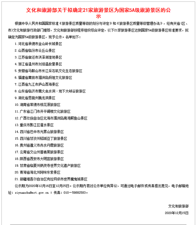 12月15日,文化和旅游部发布公示