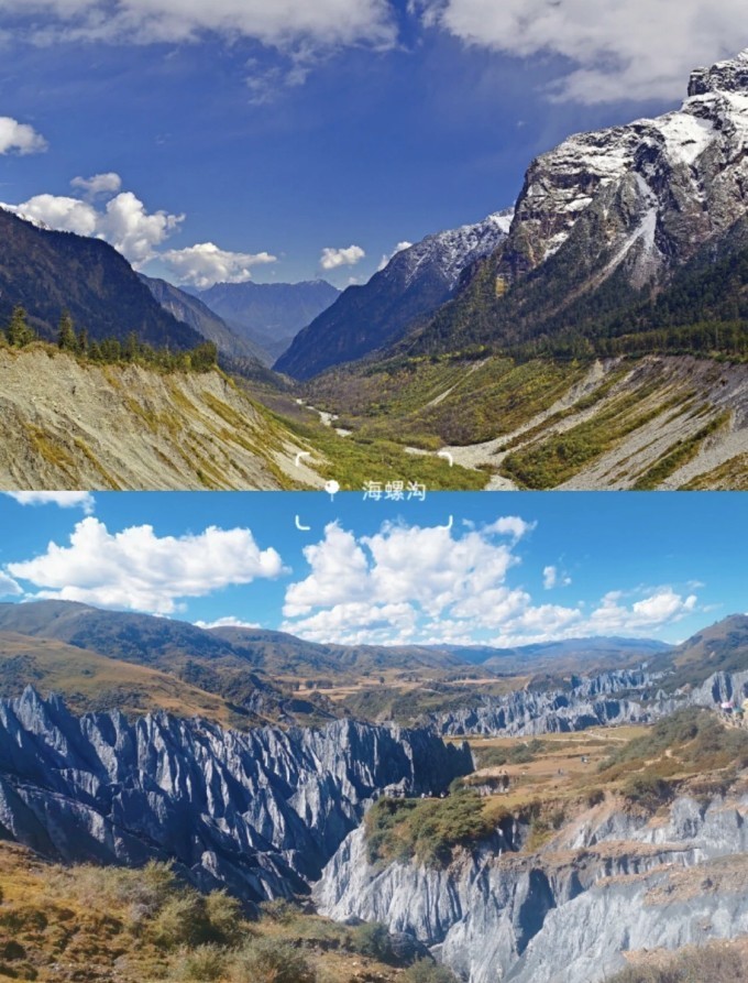 海螺沟 位于 贡嘎 雪峰脚下,以低海拔现代冰川著称于世。巨大的冰洞、险峻的冰桥,使人如入神话中的水晶宫。