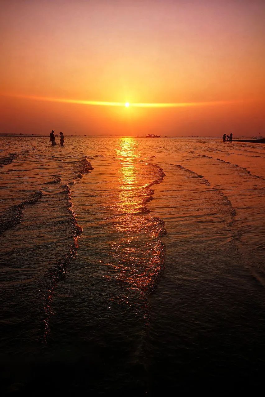 在金滩赏金色落日撒下一望无际的橘色海洋,收获冬日的浪漫。