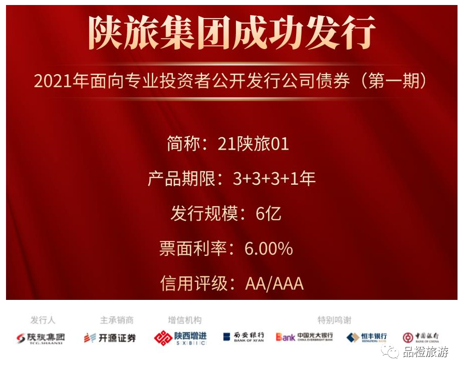 【品橙旅游】日前,陕旅集团6亿元公司债券成功发行。这是近年来陕西旅游在资本市场上的又一次有益探索,也是陕旅集团拓宽融资渠道、降低融资成本的有力举措。特别是在西安疫情再起的背景下,以陕旅集团为代表的西部国有旅游集团主动扛起地方文化旅游高质量发展的大旗,对提振区域文化旅游的复苏具有较强的示范性带头作用。同时也是应对疫情,最好的“良方”。