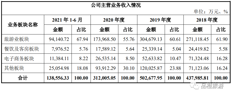 2018年度、2019年度、2020年度和2021年1-6月,陕旅集团主营业务收入分别为43.80亿元、50.27亿元、31.20亿元和13.86亿元。2020年度,陕旅集团主营业务收入同比降幅为37.93%。从陕旅集团报告期主营业务收入构成上看,旅游业营业收入占主营业务收入的比例保持在55%以上,旅游业一直是陕旅集团的核心业务,占绝对主导地位。陕旅集团主营业务毛利率呈波动下降态势。