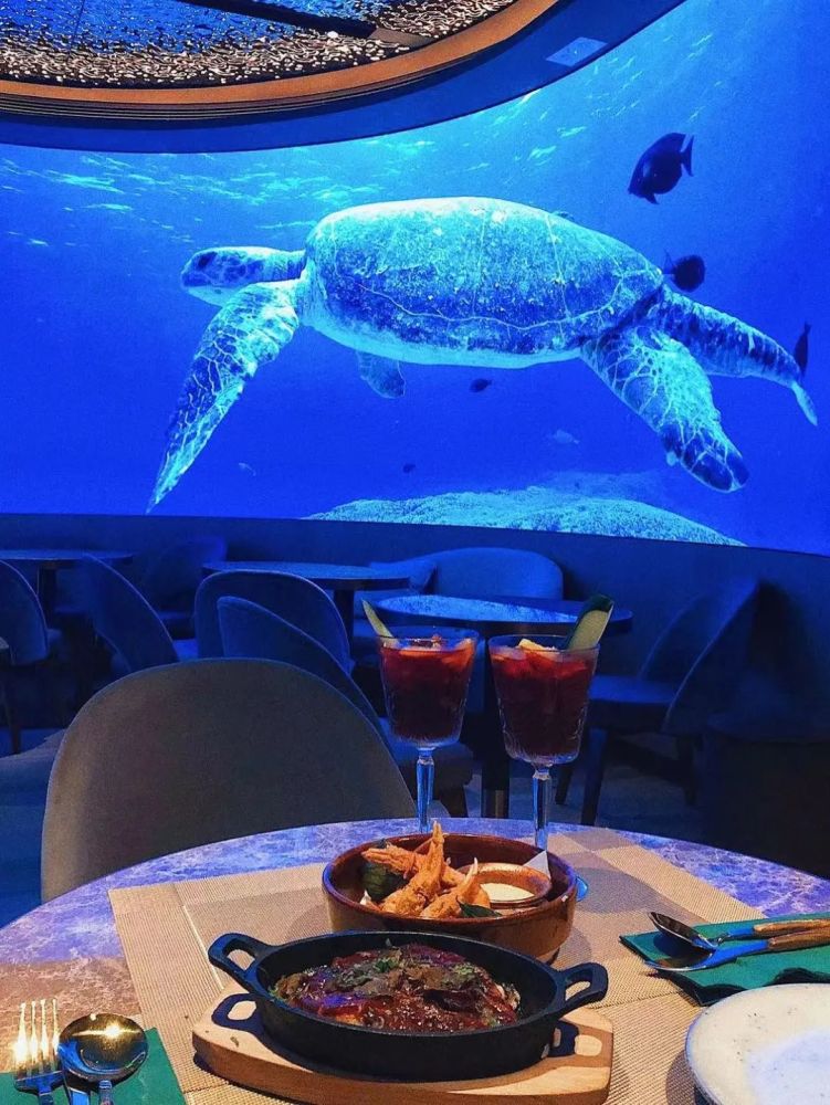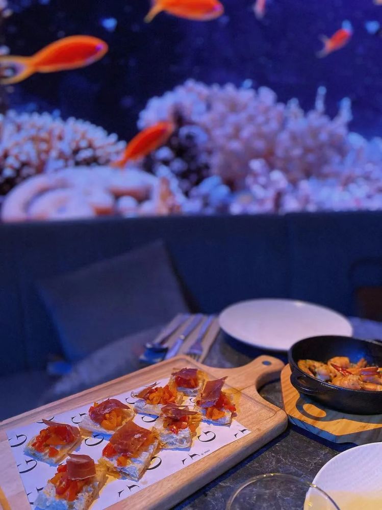 一间西班牙美食餐厅中有着LED高清环绕荧幕
