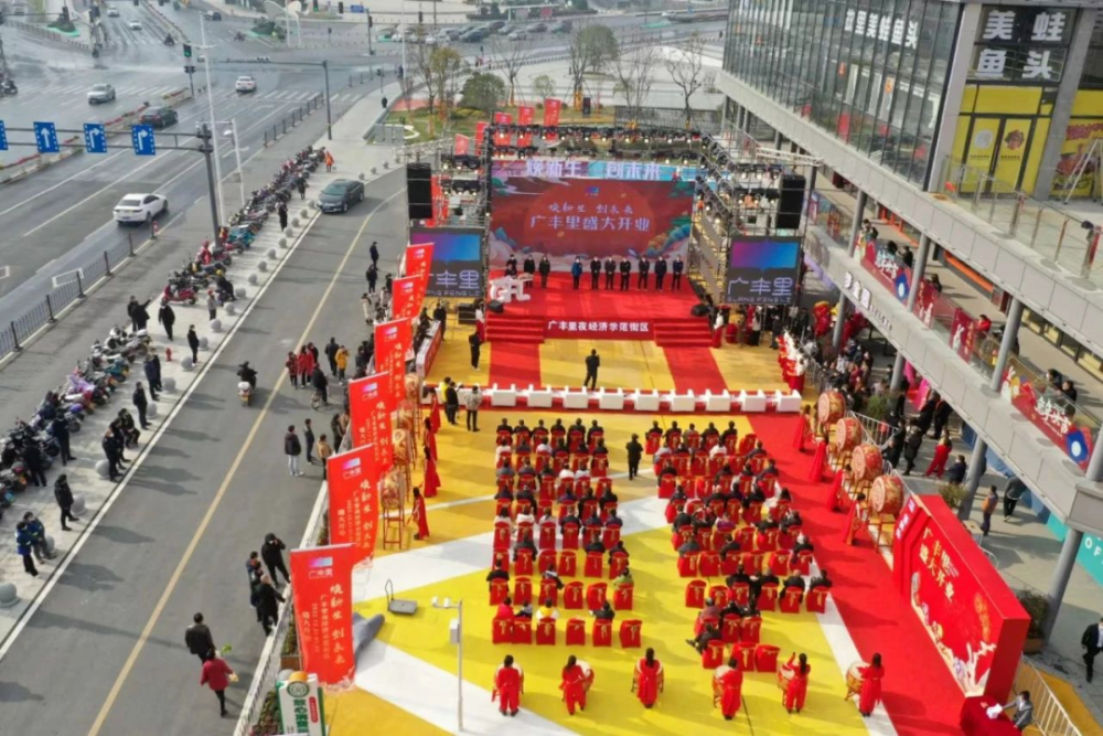 1月1日上午,“广丰里”夜经济示范街区举行开业仪式。据悉,“广丰里”夜经济示范街区总投资10亿元,总建筑面积3.6万平方米,以打造本土文化、地域风情、夜生活为主题,引进了大型生鲜精品超市、巨幕院线、潮流街区、特色美食、跨界娱乐等多种业态,能给广大消费者提供全新的消费场景和一站式的购物体验。开业后每年将拉动超6亿元消费,解决3000多个就业岗位,“15分钟”便民休闲夜经济生活圈可辐射周边50万市民,对促进招商引资、繁荣地方经济、引导消费潮流、方便居民生活、提升城市品位都将发挥重要作用。