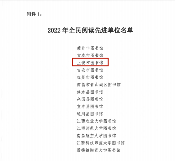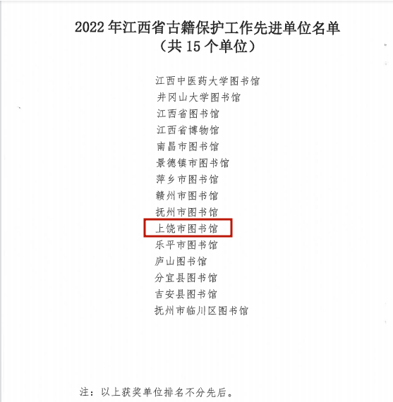 5、上饶市图书馆喜获2022年江西省全民阅读先进单位和江西省古籍保护工作先进单位两项集体荣誉