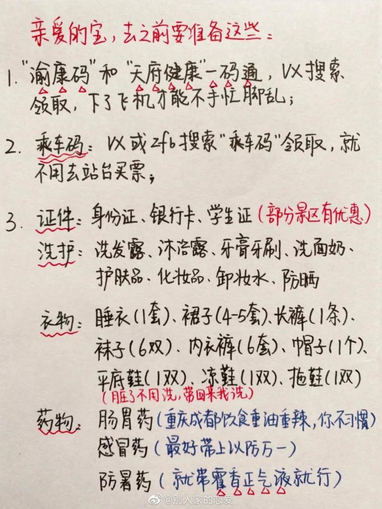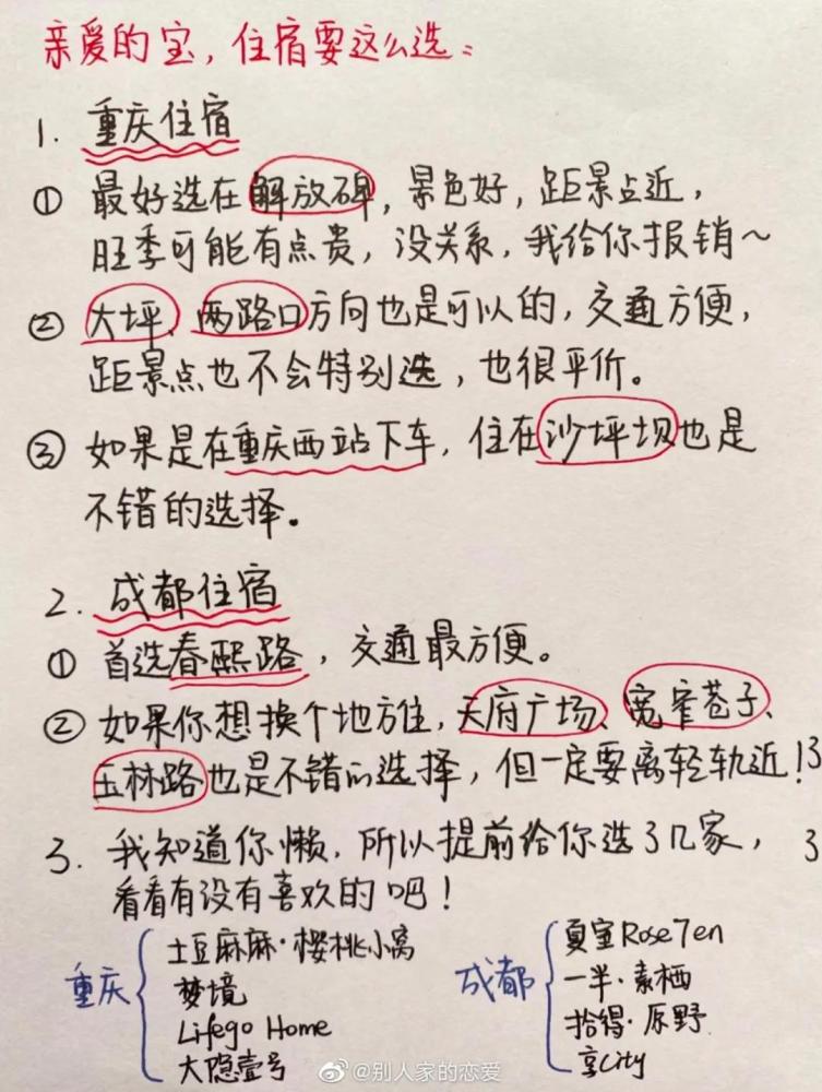 近日一份男友手写旅行攻略上了热搜