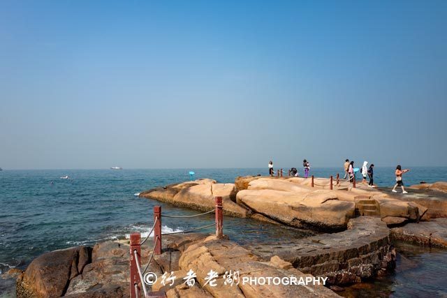 最长的玉带还是码头上岸之后灯塔左边一条情侣路,从客运码头一直可以走到海滨浴场。沿途有摩崖石刻、钓鱼台、玉带环腰、海螺奇石、金石公园等等。由于以前这里是军事要塞,岛上到处都留有碉堡,途中还能看到。