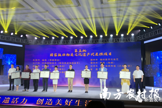 6月11日,“文化和自然遗产日”广东主会场(中山)暨石岐龙舟文化周启动仪式上,第五批国家级非遗代表性项目及第八批省级非遗代表性项目被授予牌匾证书,其中包括新会陈皮炮制技艺。