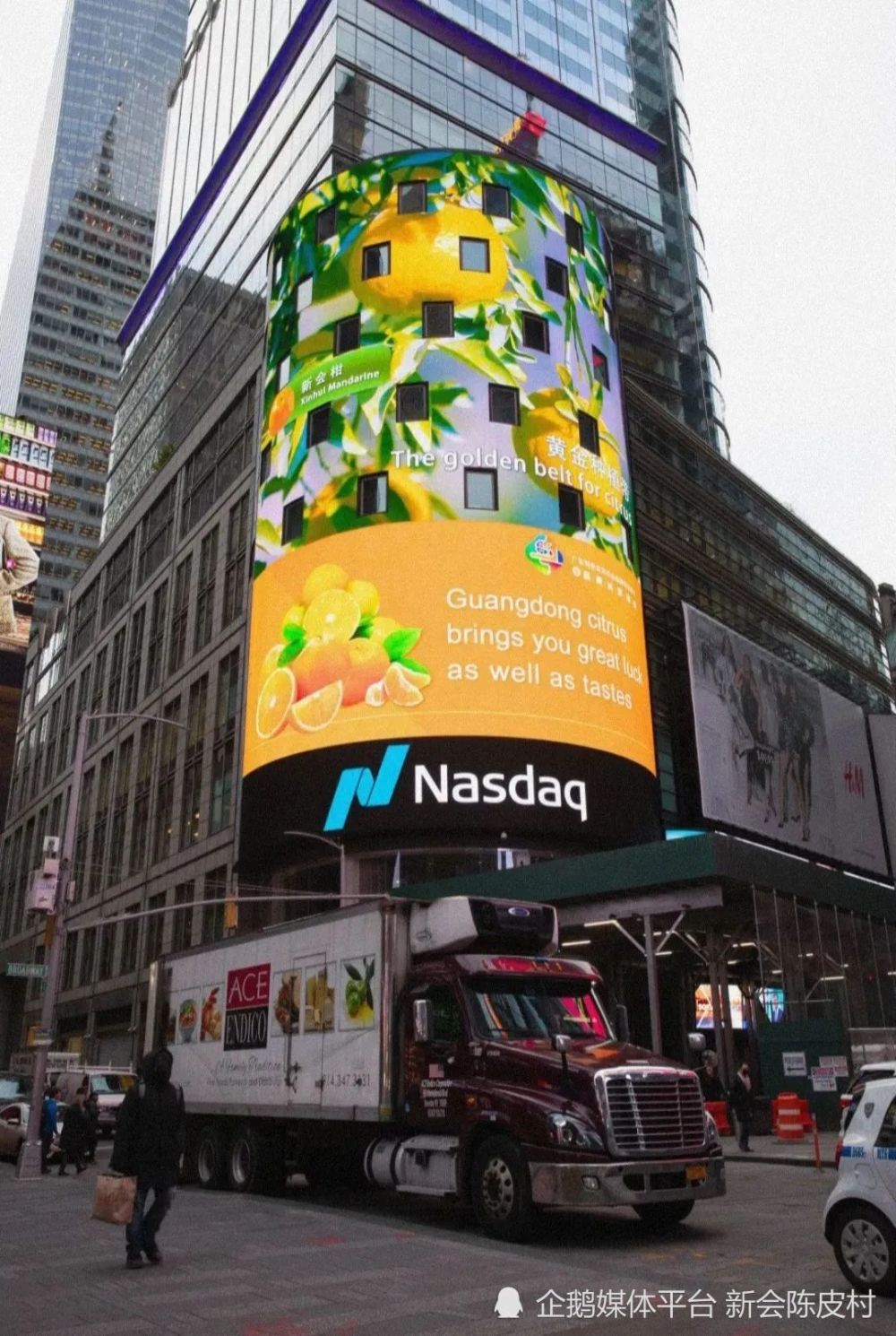 纽约当地时间11月29日,新会柑等广东柑橘天团成员集体亮相美国纽约时代广场纳斯达克大屏,成为世界焦点,进一步擦亮了广东柑橘的国际品牌,让全球共同领略广东农业的精彩。